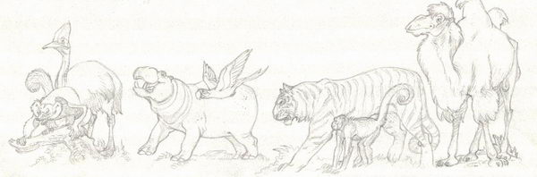 Voici les croquis de Frank pour ces silhouettes :