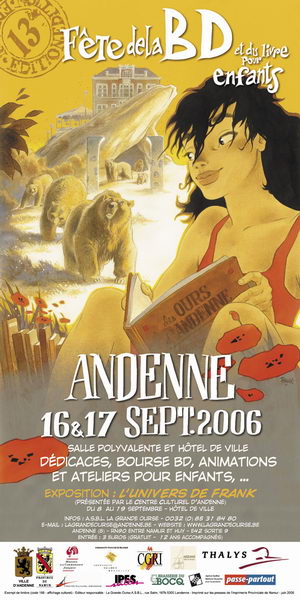 Plutôt que de participer aux traditionnelles séances de dédicaces, il dessinera une grande fresque composée "d'une cohorte de bêtes se prenant les pattes dans des albums et se pressant pour rentrer dans le centre culturel".Affiche Andenne 2006