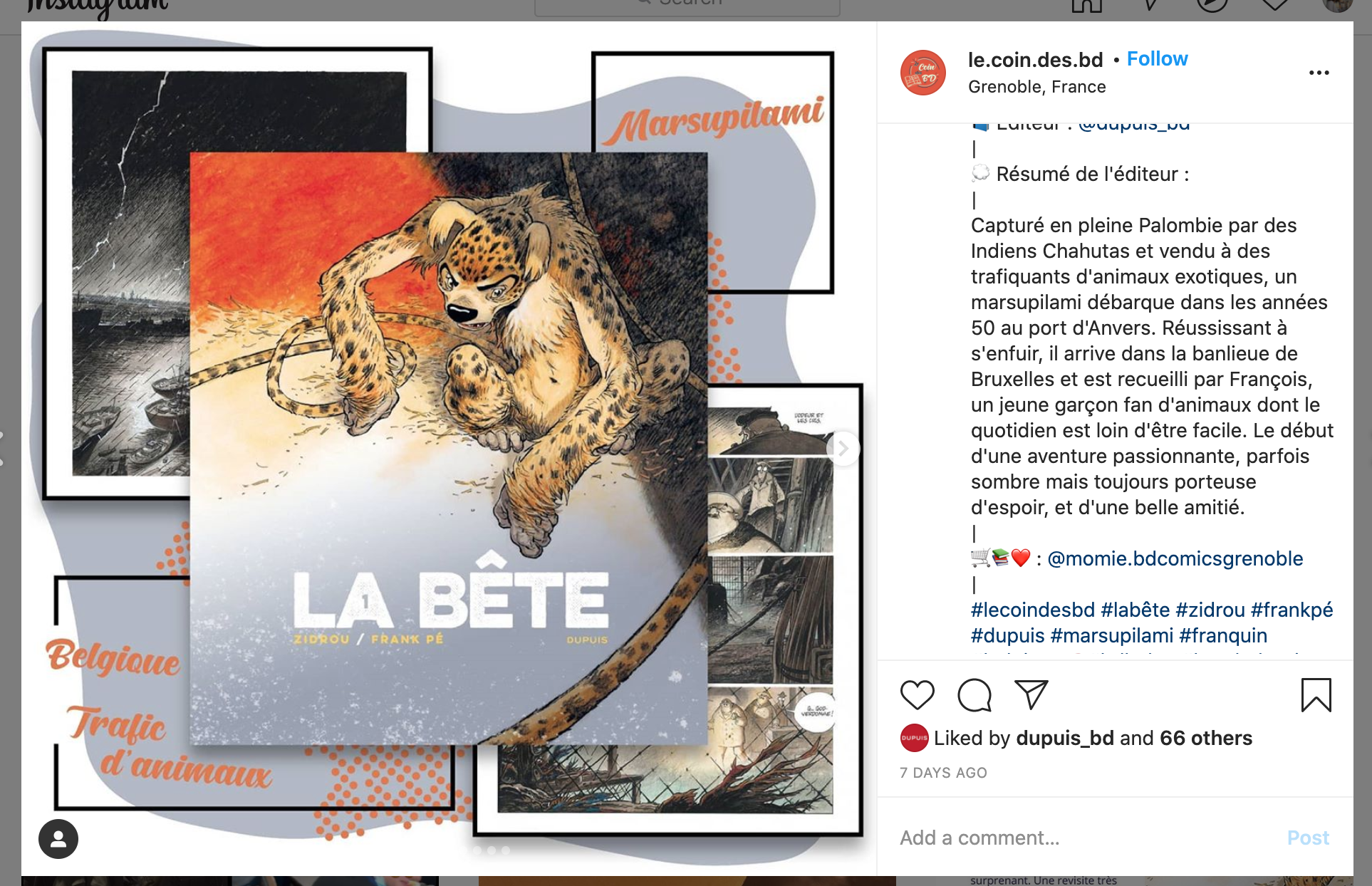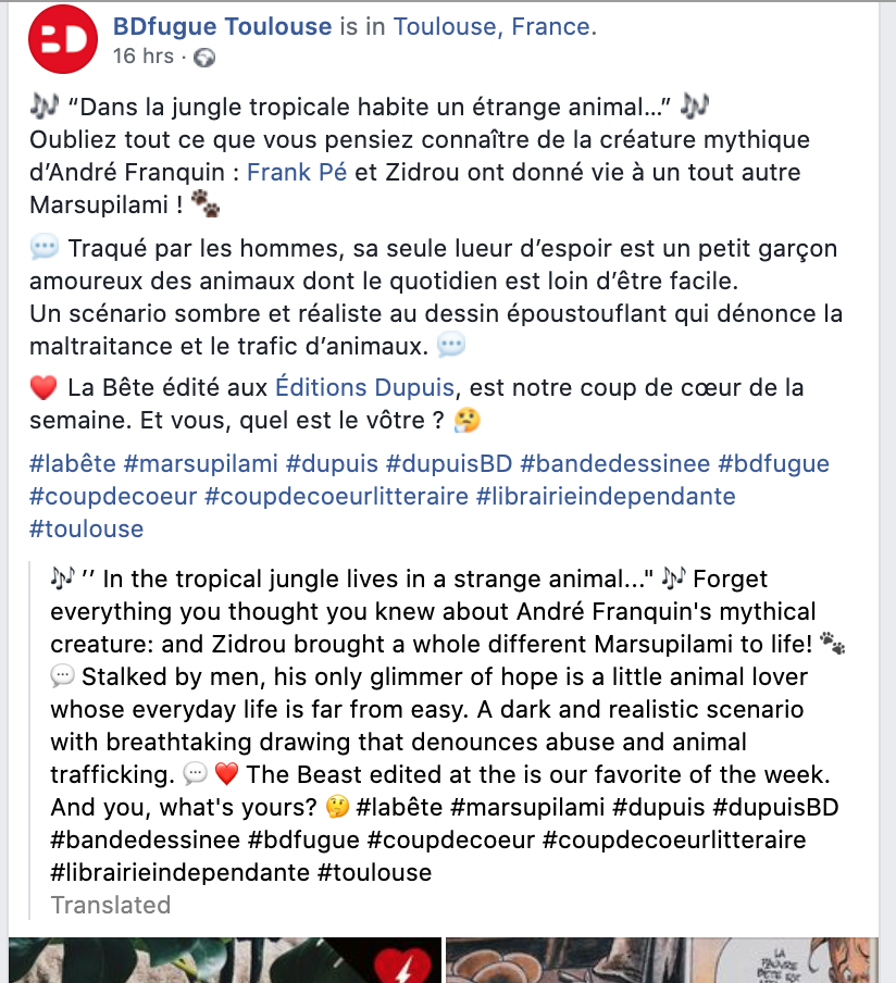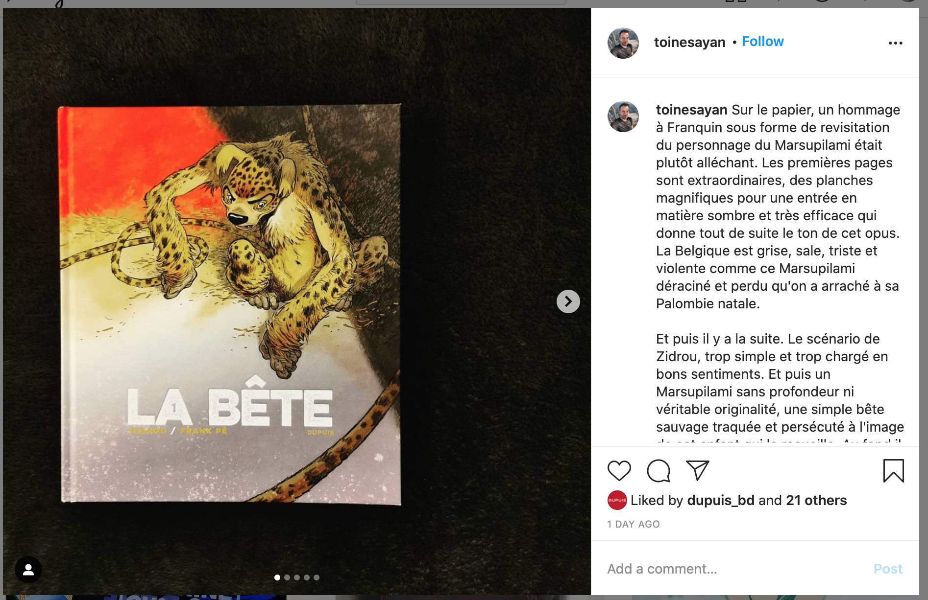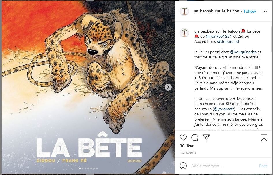 Plein de messages sur Instagram et Facebook ont été détectés par le service de presse de Dupuis.