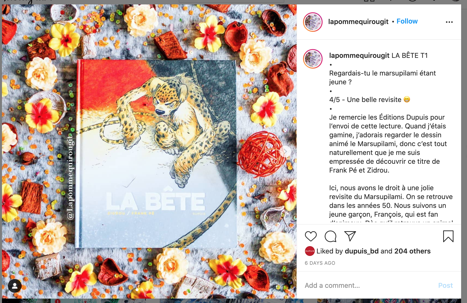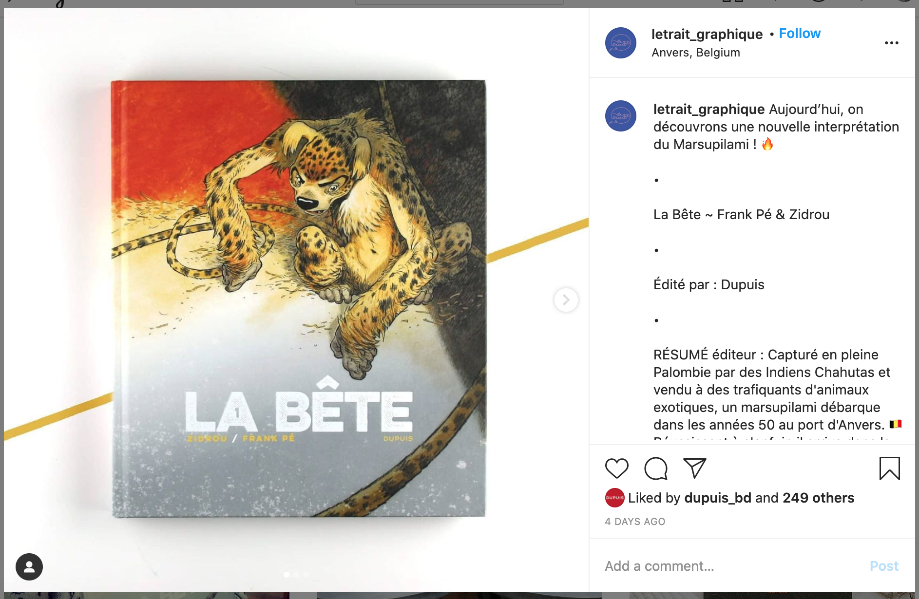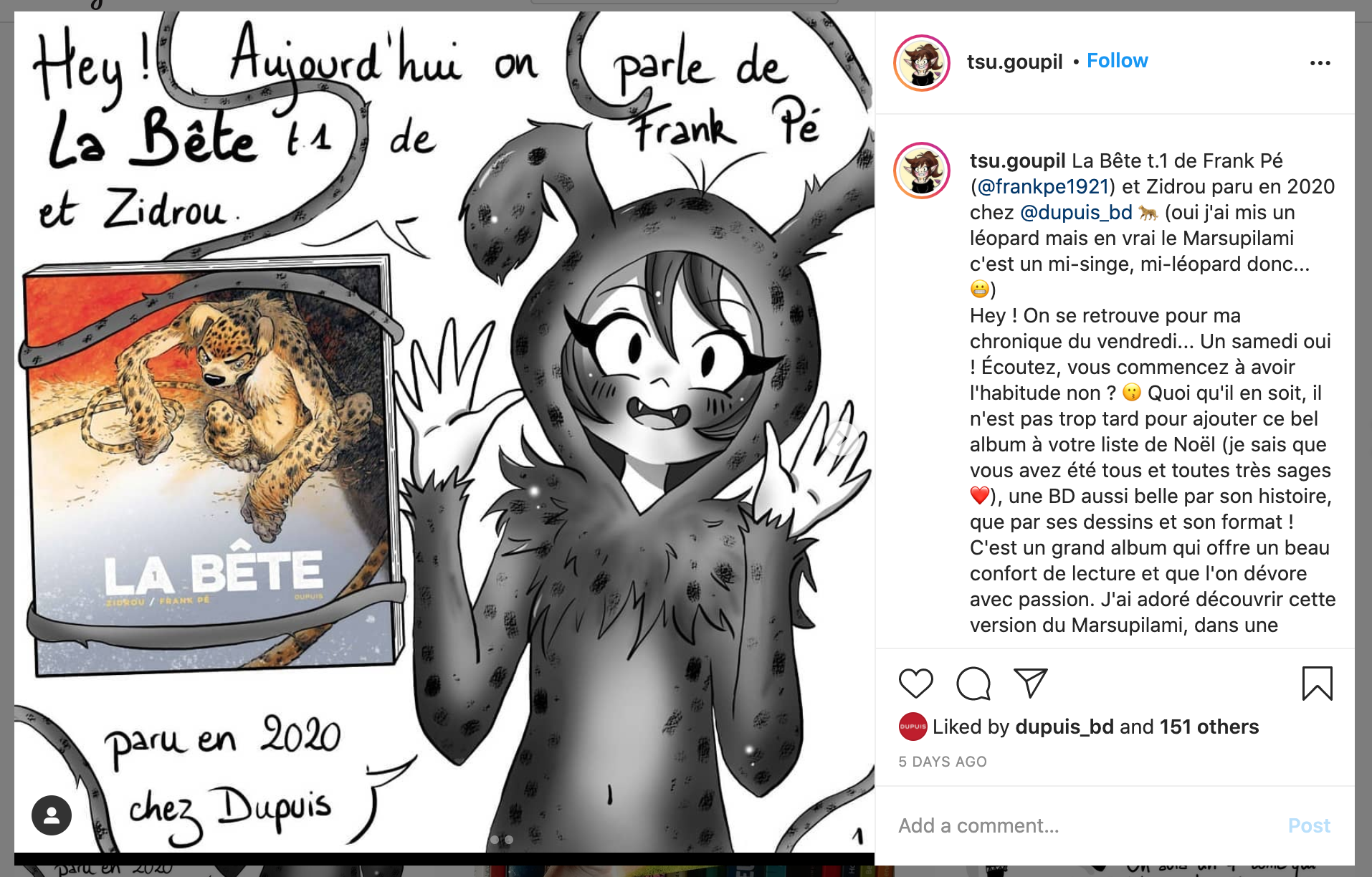 Plein de messages sur Instagram et Facebook ont été détectés par le service de presse de Dupuis.