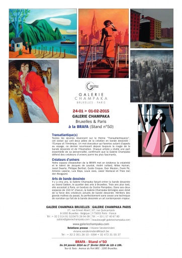 La GALERIE CHAMPAKA (Bruxelles) et la GALERIE 9e ART (Paris) associent leurs savoir-faire pour présenter à la BRAFA (Brussels Antiques & Fine Arts Fair) un stand d’exception dédié à la bande dessinée mondiale