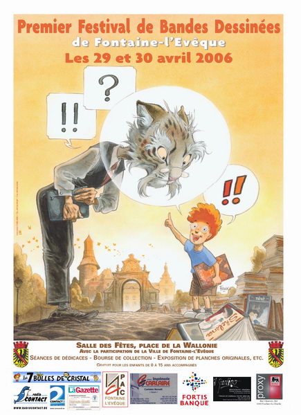 Voici le dessin original destiné à l'affiche du festival BD de Fontaine-l'Evêque, qui se déroulera les 29 et 30 avril 2006 :