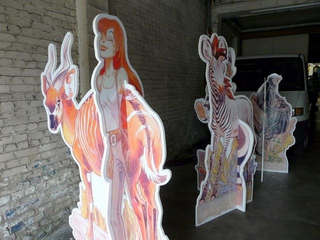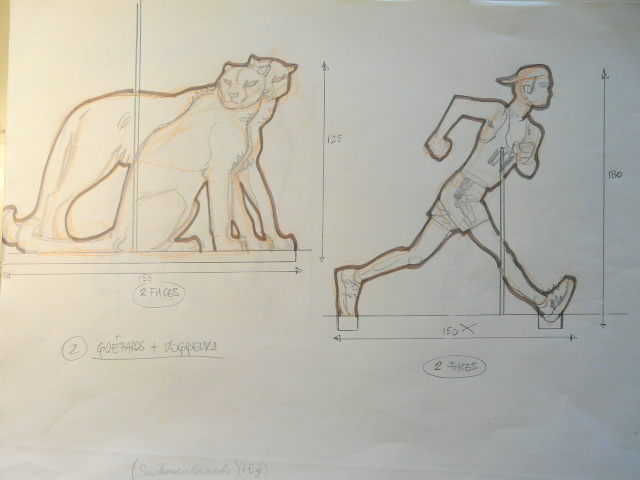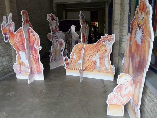 Frank a dessiné pour le zoo de Montpellier des personnages qui ont été ensuite recopiés sur de grand panneaux qui seront exposés un peu partout dans le ZOO.