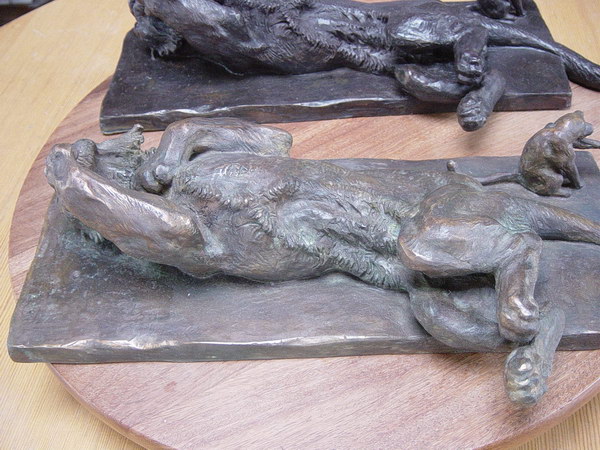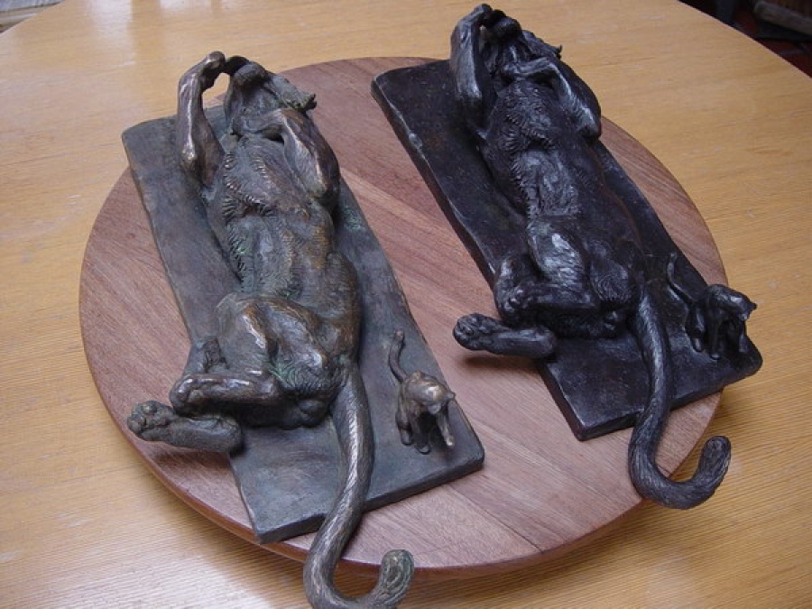Félins se léchant la patte - nouvelle patine