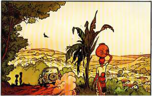 C'est de nouveau suite à  un voyage, au Burundi, que Frank a décidé d'écrire cette nouvelle histoire de Broussaille. N'importe quel touriste emporterait un appareil photo, mais lui préfère son carnet de croquis, grâce auquel il immortalise des paysages hors du commun, des moments de vie. Bom est également de retour, et apporte sa touche caractéristique, mêlant les sentiments et le rêve.
