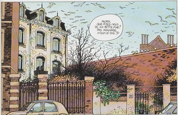 Ci-dessous, une image extraite de l'excellent dossier pédagogique du CRDP de Poitou-Charentes (que vous pouvez découvrir ici), montre les lieux d'actions des différents albums, que nous développerons dans les prochains chapitre de ce satellite... : La maison d'Auguste Petit, que l'on peut voir à la page 17, est inspirée d'une maison bien précise de la rue Wiertz... Les photos qui suivent montrent clairement l'analogie. Outre la façade, remarquez aussi la grille métallique :