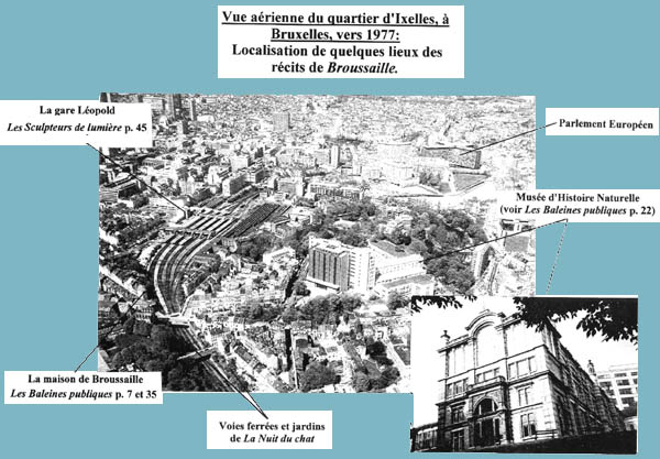Rue GodecharieLa rue dans laquelle Broussaille habite, la rue des Acacias, est fortement inspirée de la rue Godecharle, située non loin de la rue Wiertz. Malheureusement, la construction du Parlement européen a entraîné la destruction de cette partie de la rue. Voyez ci-contre à quoi elle ressemble de nos jours :