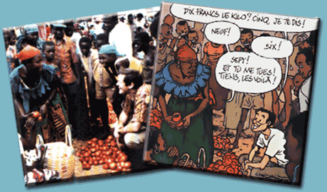 A la planche 15, Broussaille s'attarde au marché de Rugombo. Ci-dessous, on voit une photo prise par Frank lors de son séjour, qui a visiblement servi de modèle pour cette case :